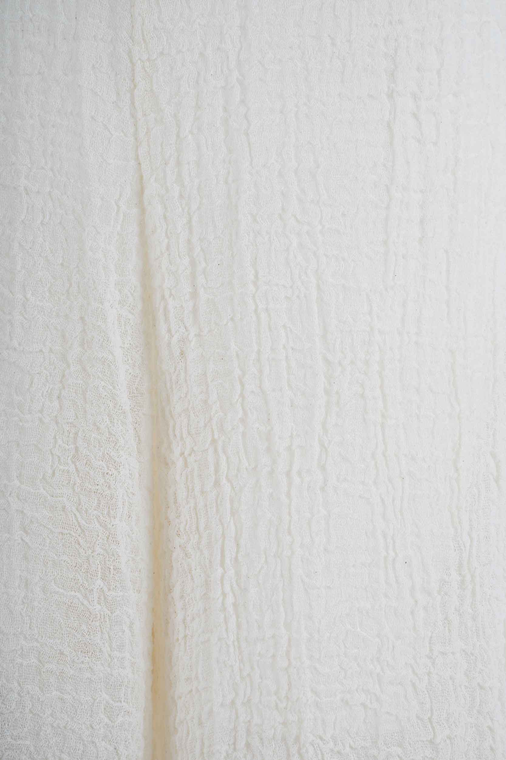 The ethnic looming technique brings subtle texture and depth to the off-white silhouette, while the airy fabric offers weightless movement and breathable comfort.