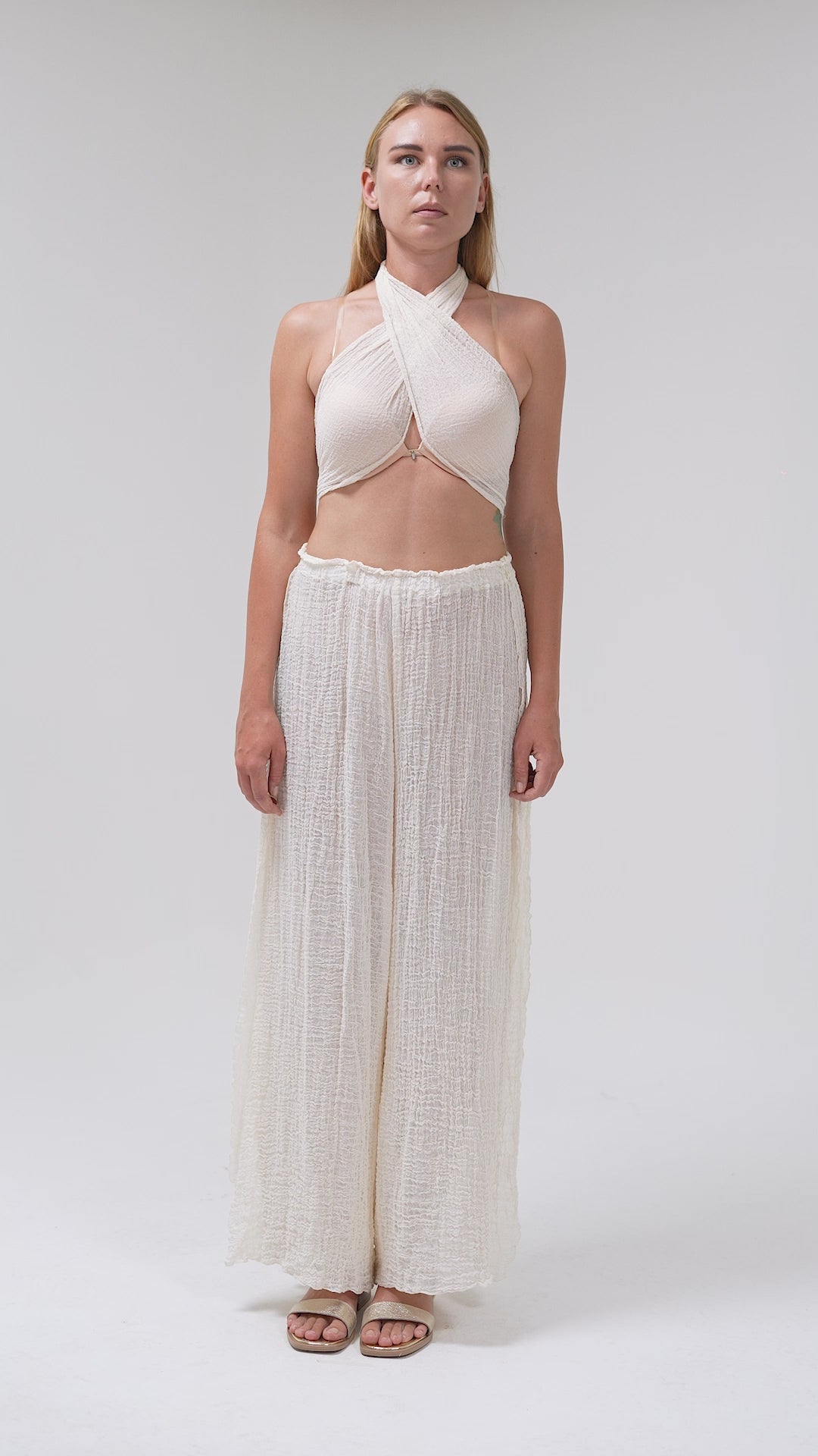 Whether layered over swimwear or styled for a slow summer day, these pants capture the essence of artisanal heritage in a modern, minimalist form.