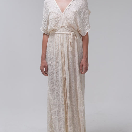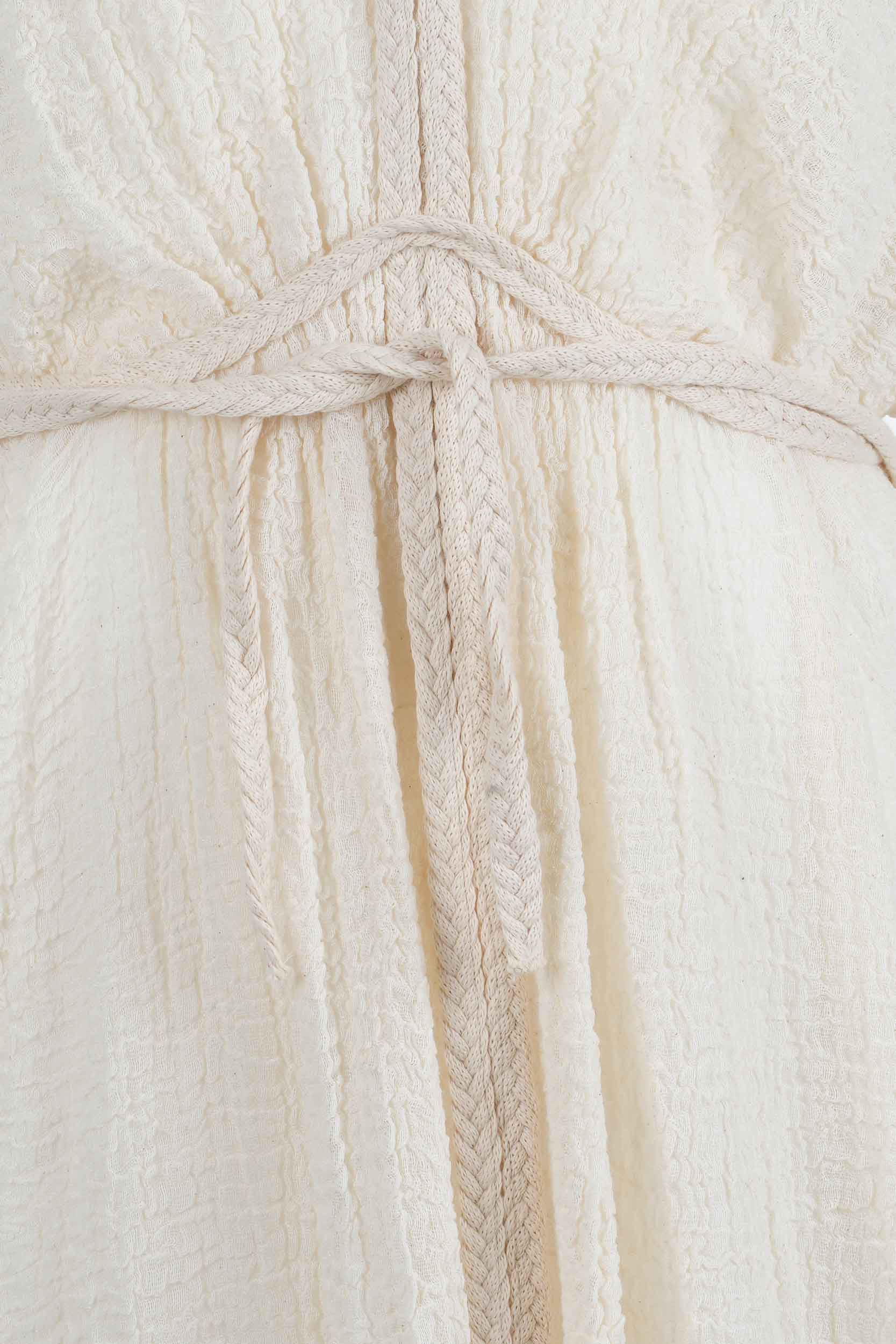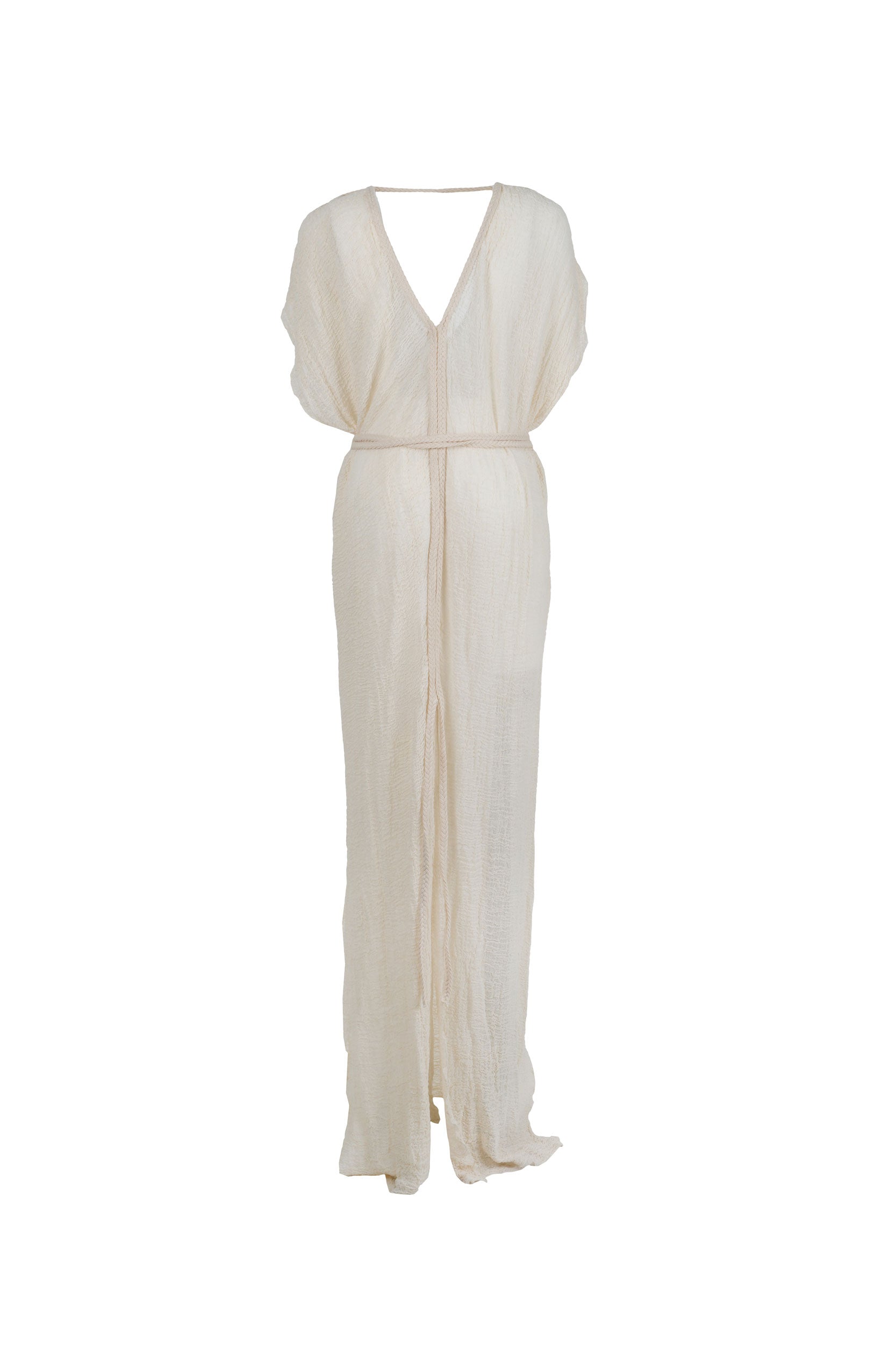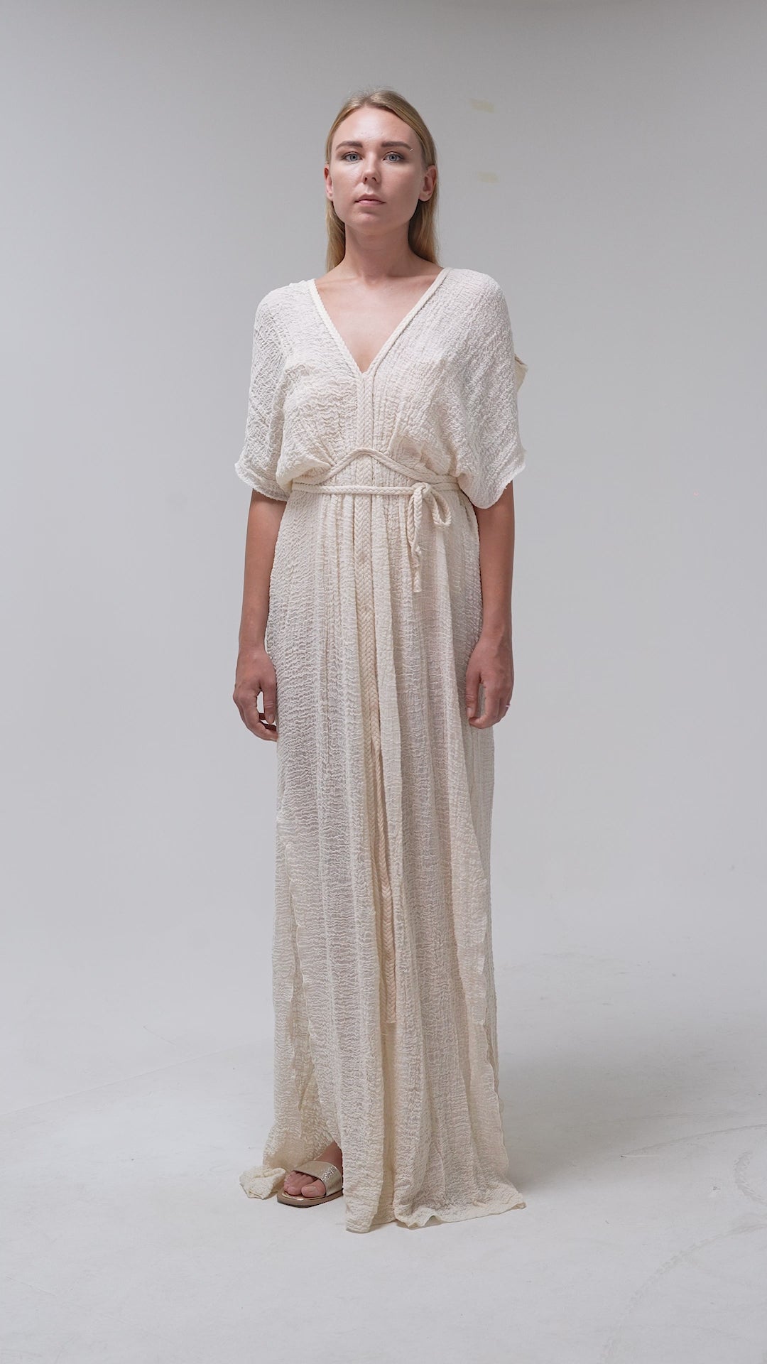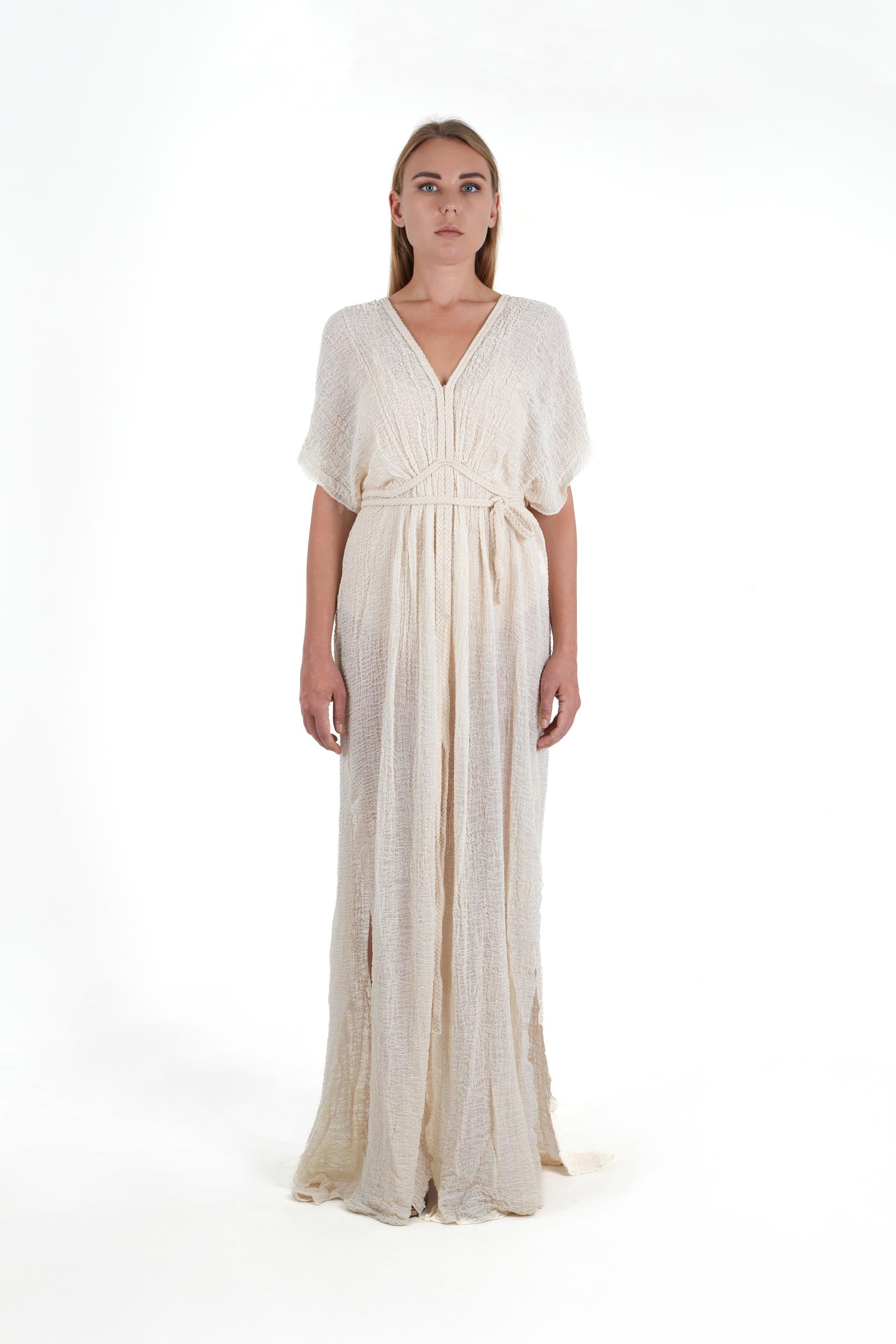 Crafted from sheer, lightweight Faralya fabric, this dress flows with every movement, offering a timeless silhouette for warm days and breezy nights.