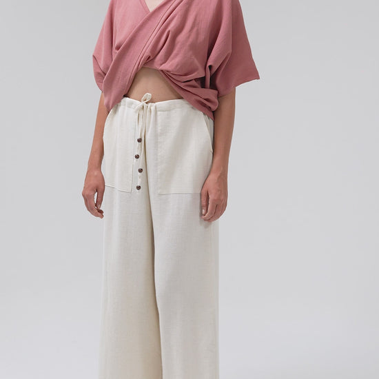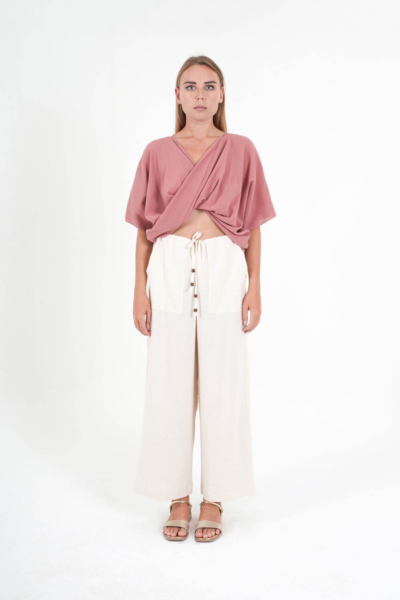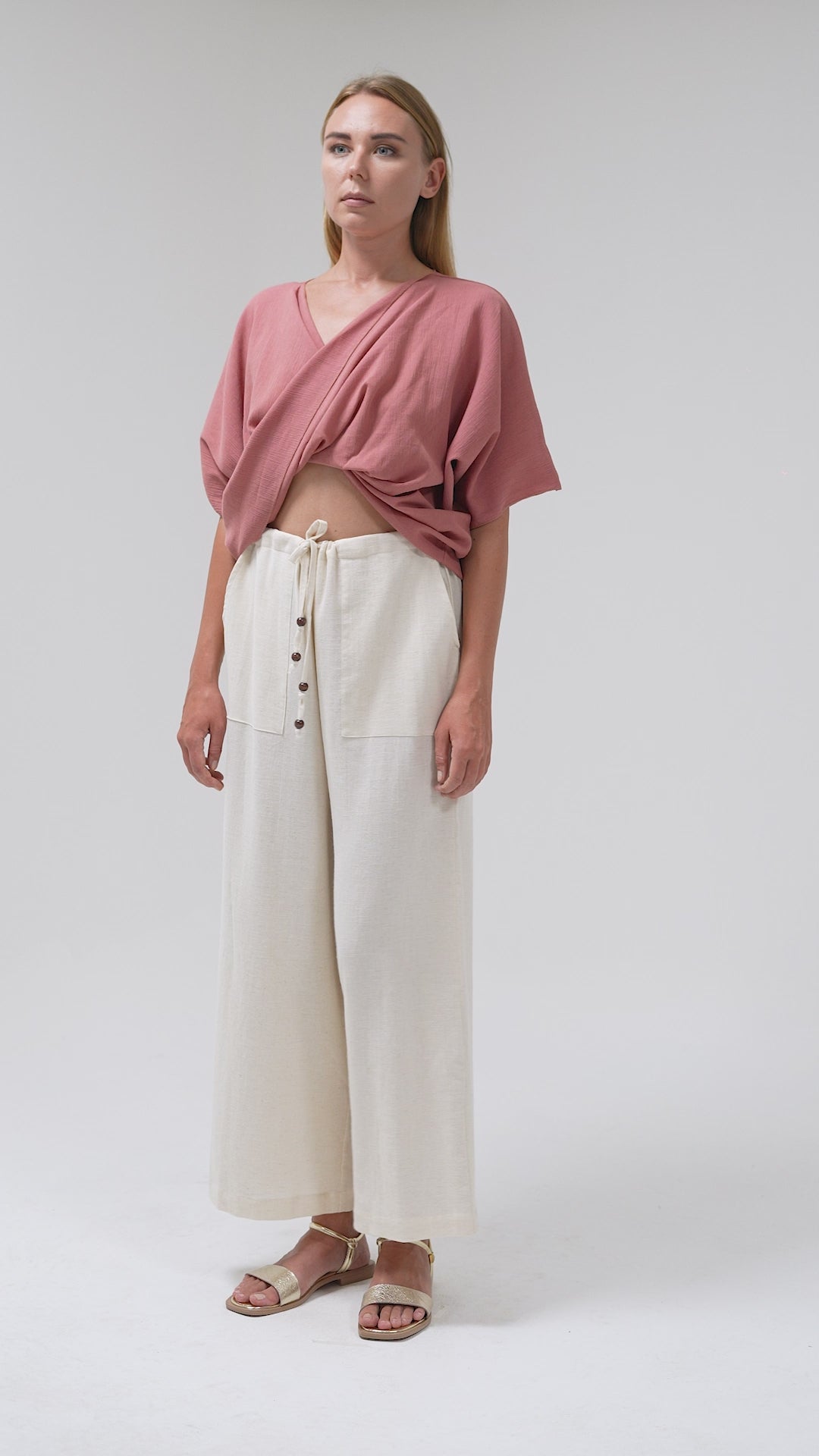 Step into effortless style with these beige wide-leg pants, Woven from 100% natural yarns, the fabric becomes softer over time and maintains its elegant drape wash after wash. Naturally woven and pre-washed for softnessThe soft beige tone is a versatile neutral color that pairs seamlessly with your favorite basics, from cropped tops to linen shirts. Designed for movement and ease, the flowy wide-leg silhouette flatters all body types while offering all-day comfort. perfect for sunny days, relaxed moments, or minimalist dressing and everyday eco-conscious fashion.