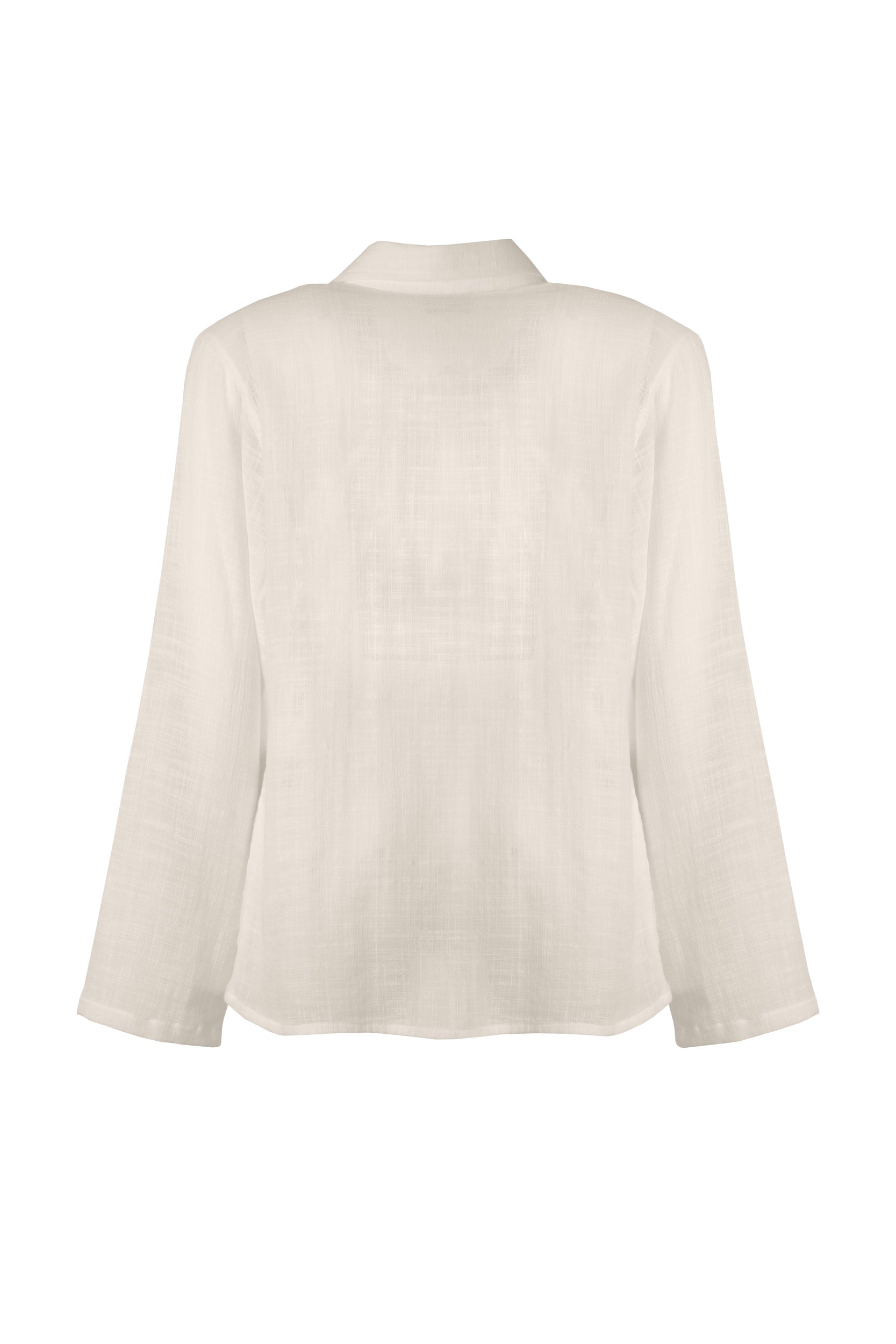 Wear it open over your favorite swimwear, buttoned up for a refined daytime look, or tied at the front for that relaxed, off-duty vibe. Made from lightweight, breathable cotton, it’s soft to the touch and designed to move with you in the heat.