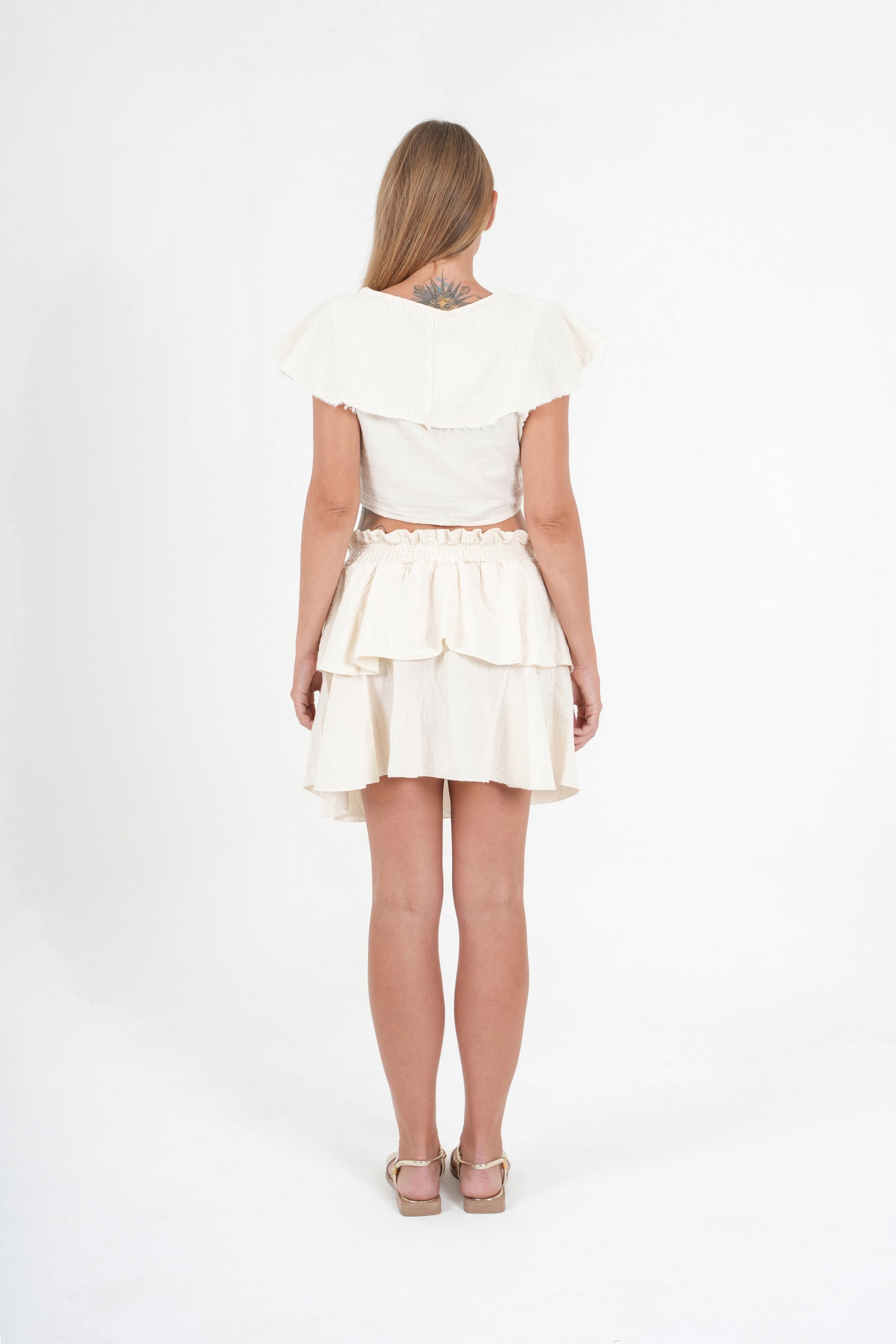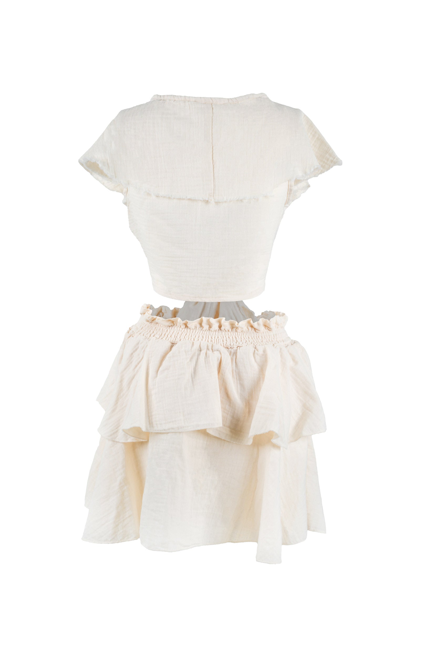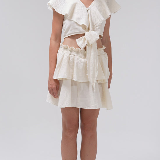 Natural Cotton Two-Piece Set – Crop Top & Mini Layered Skirt
