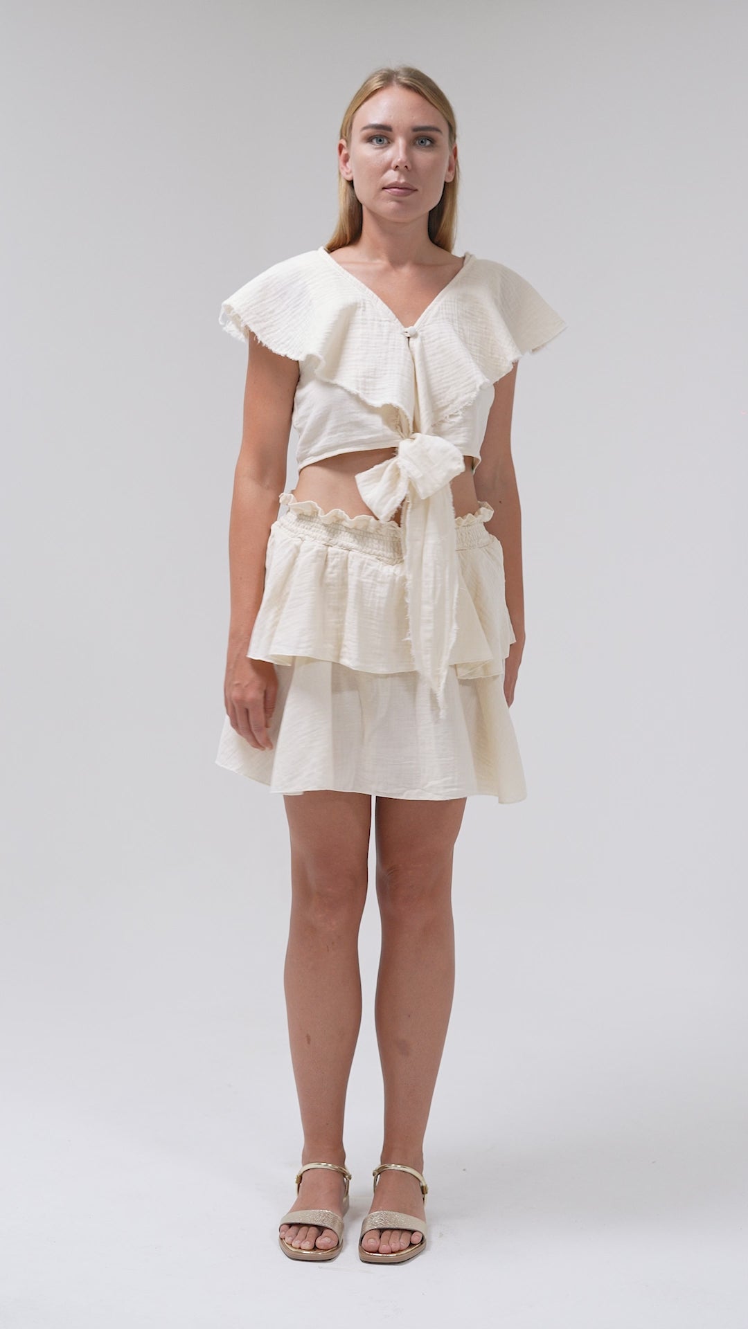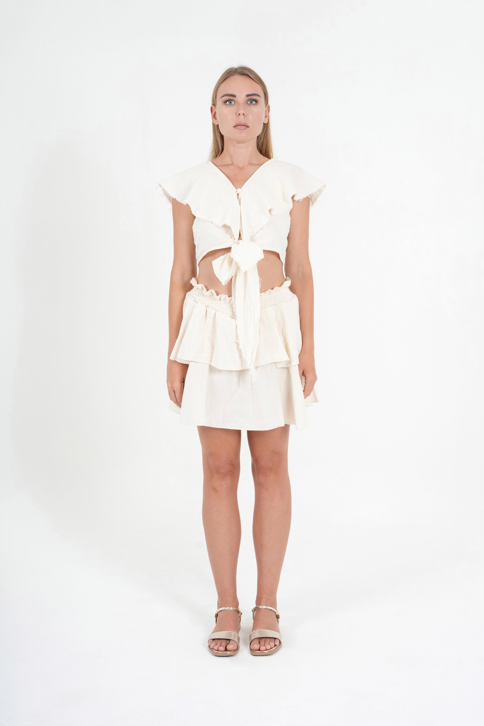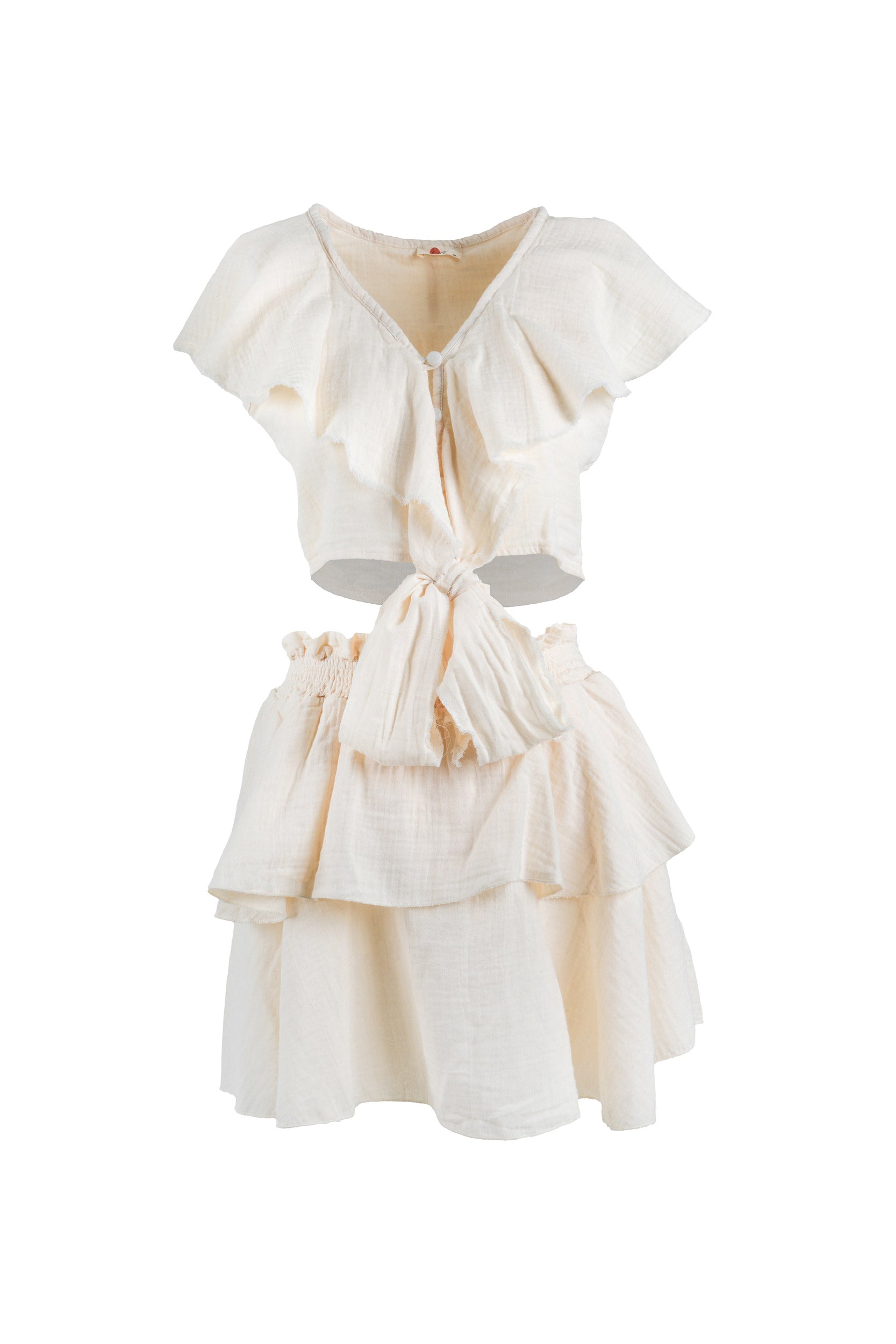 Natural Cotton Two-Piece Set – Crop Top & Mini Layered Skirt
