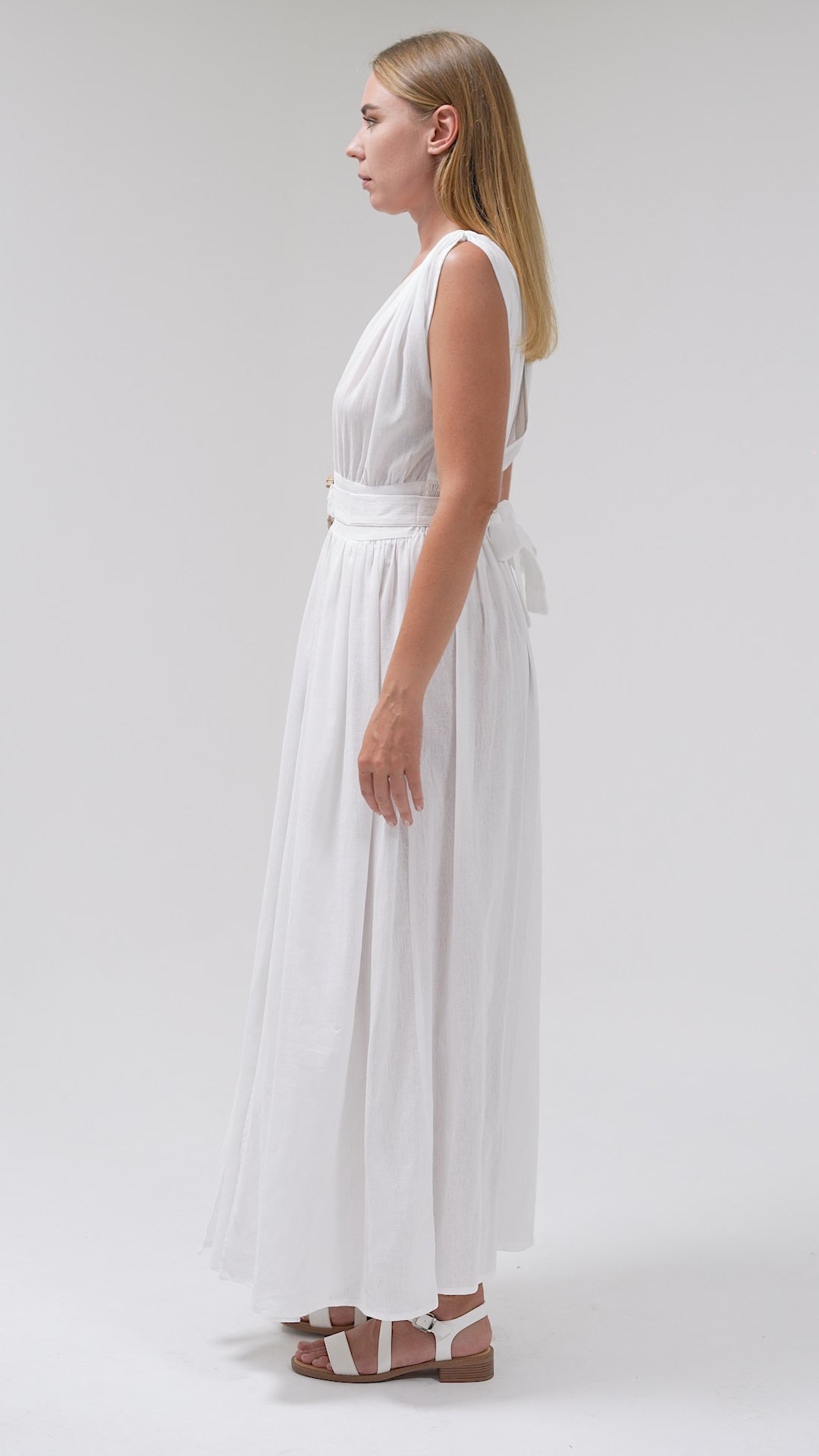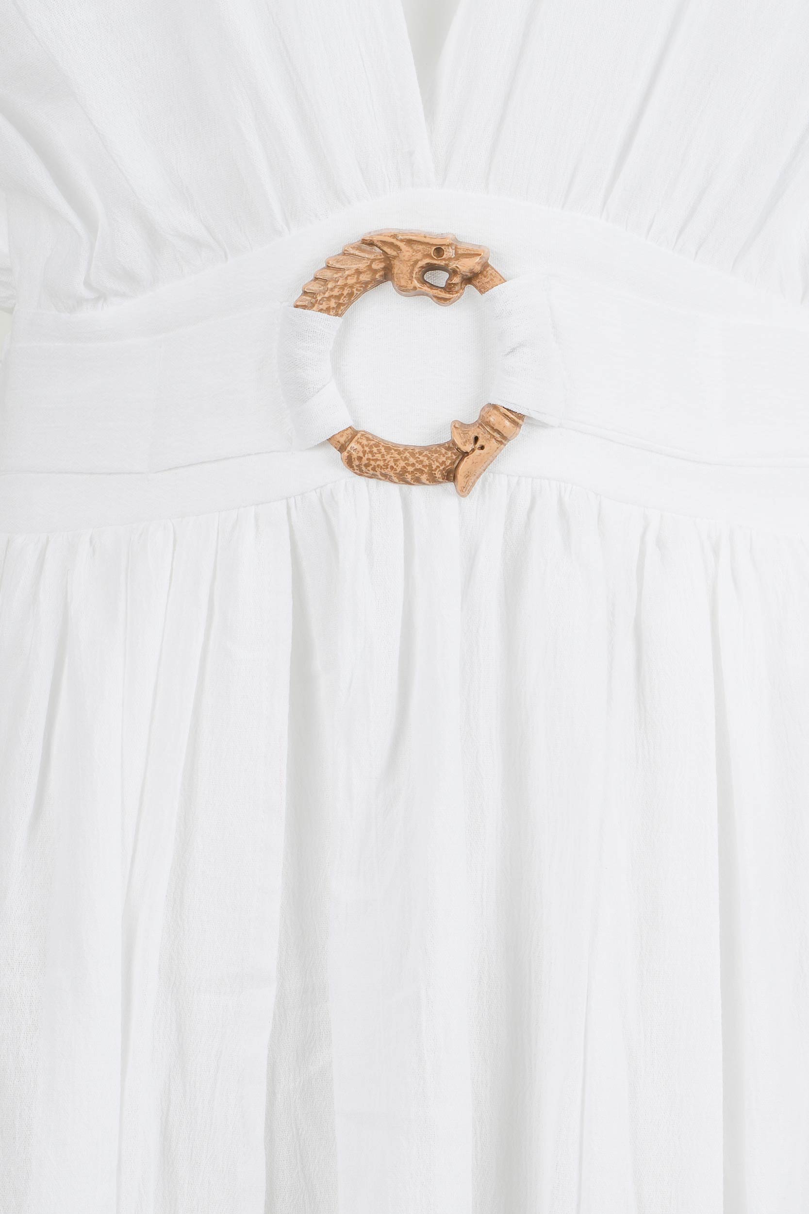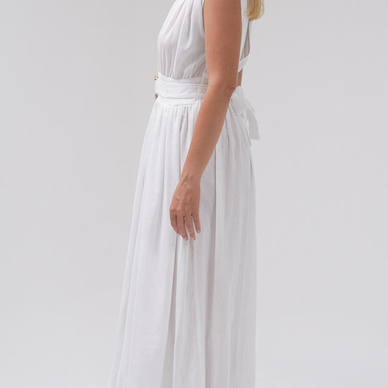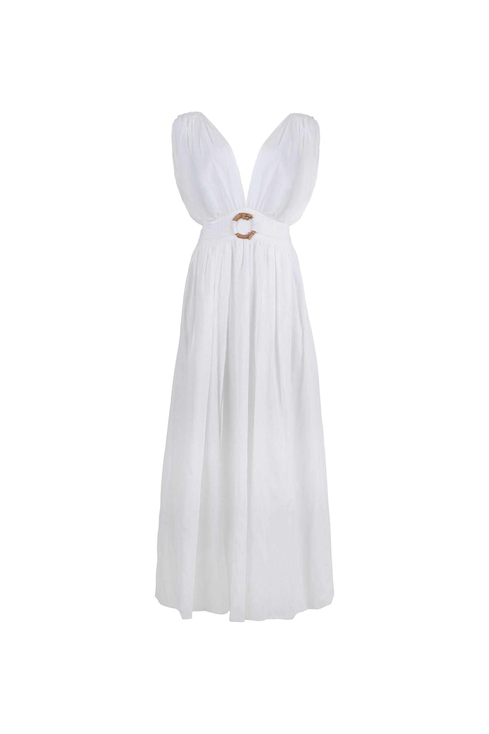 Designed by Mediterranean women for women who carry sunshine in their spirit, this deep V-neck dress reflects the effortless beauty of nature — elegant, grounded, and full of quiet allure.