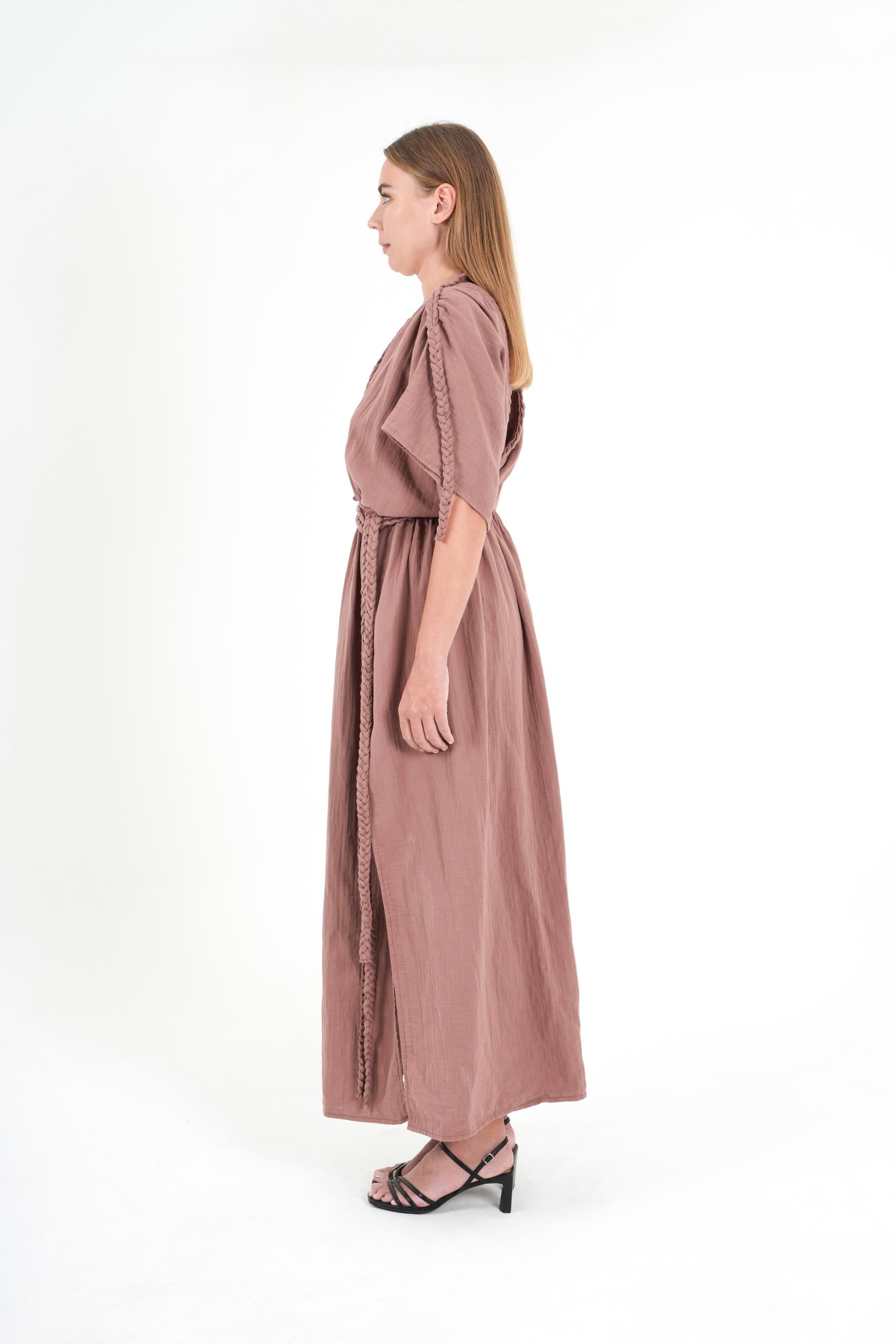 Rooted in tradition but designed for the modern woman, this long-sleeved dress wraps you in softness and ease. Its breathable structure and flowing lines are perfect for slow mornings and spontaneous evenings.