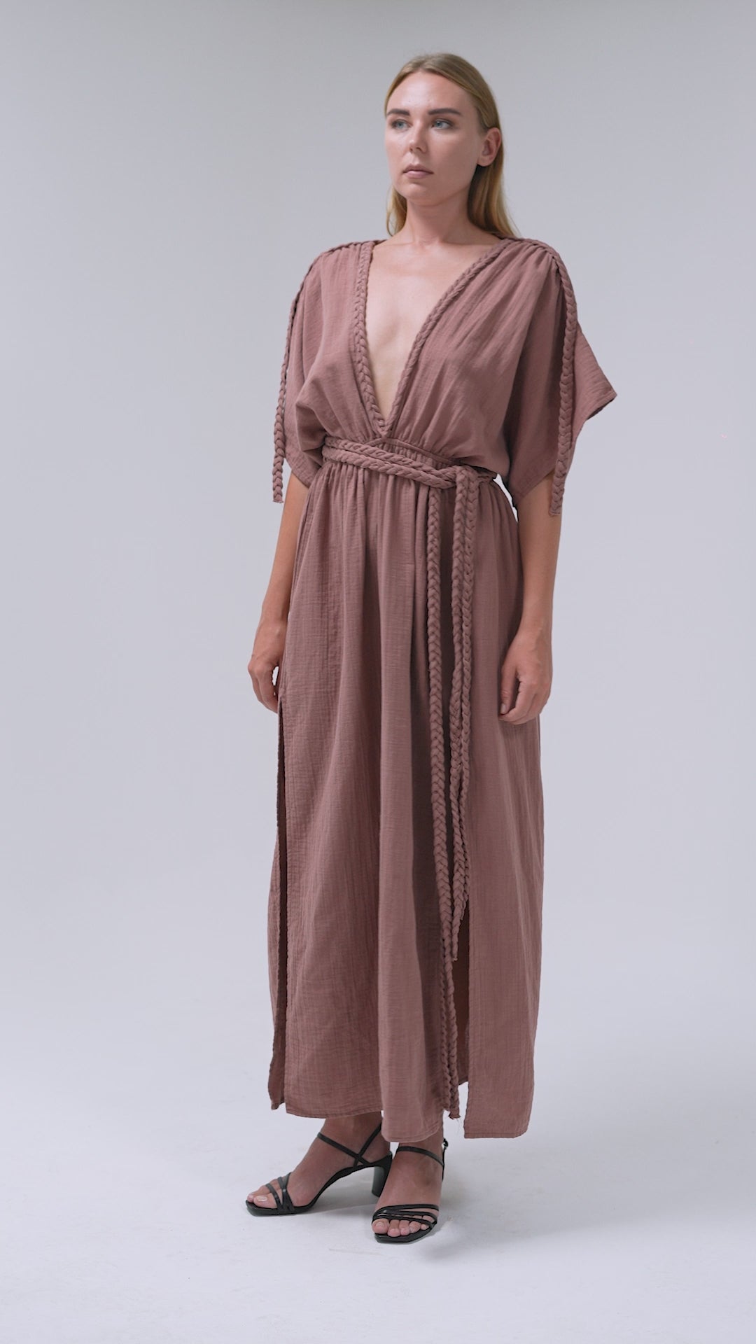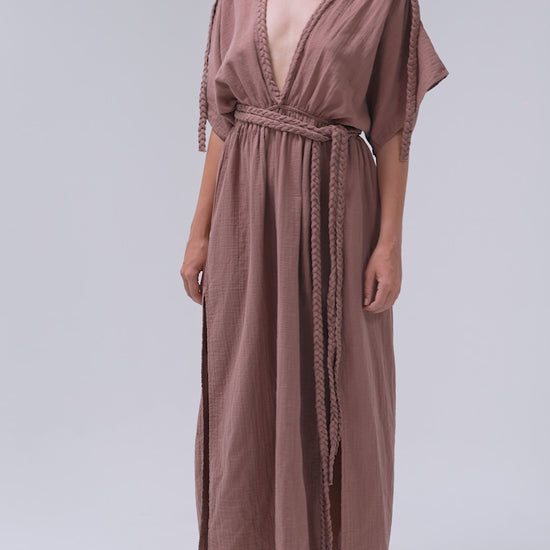 For every handmade knit accent, we use the same fabric as the dress body to ensure harmony and cohesion. The braided elements of these dresses are individually handwoven, showcasing true artisanal craftsmanship.