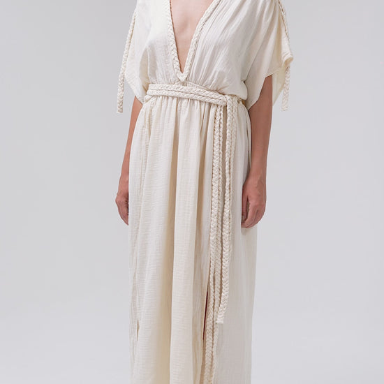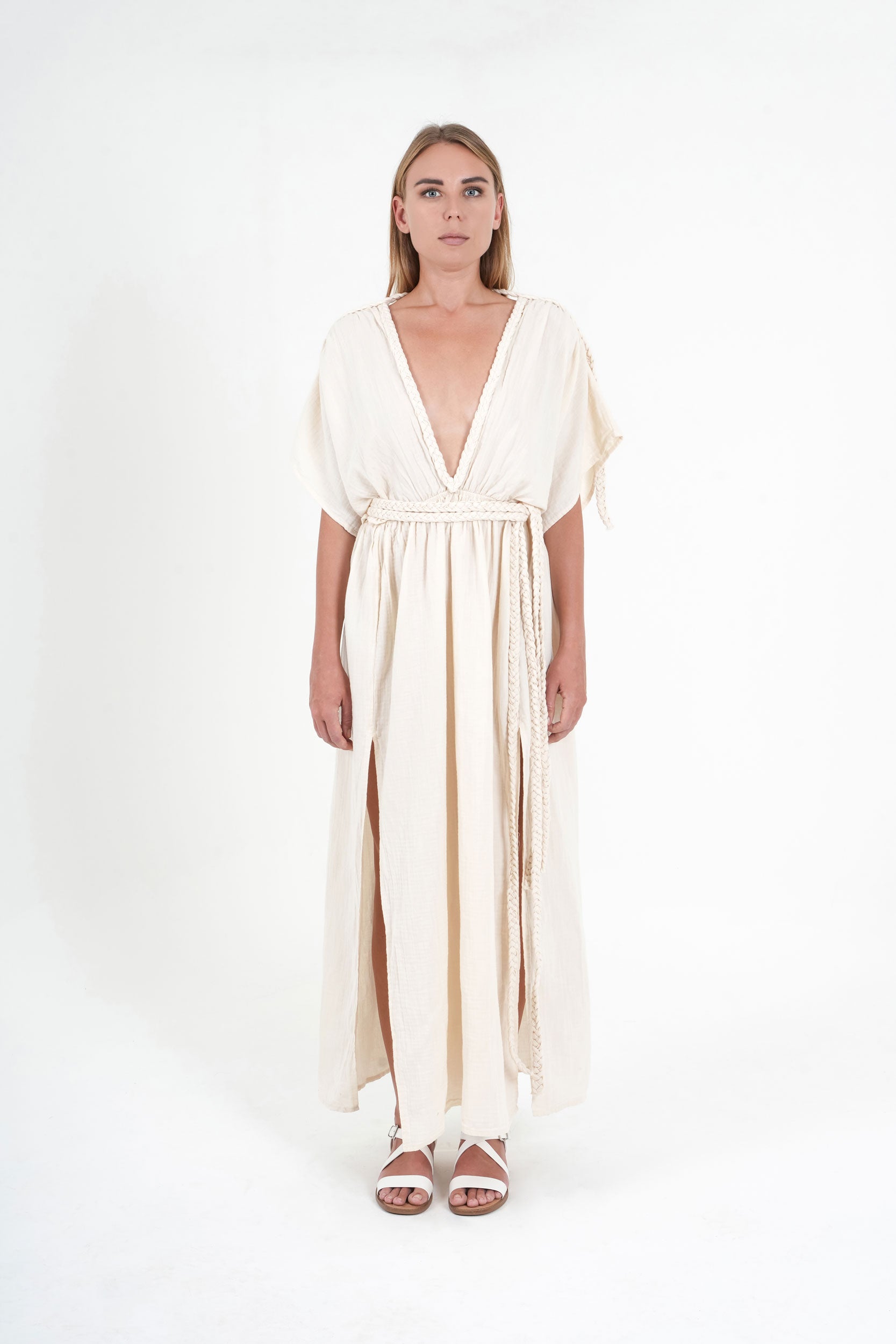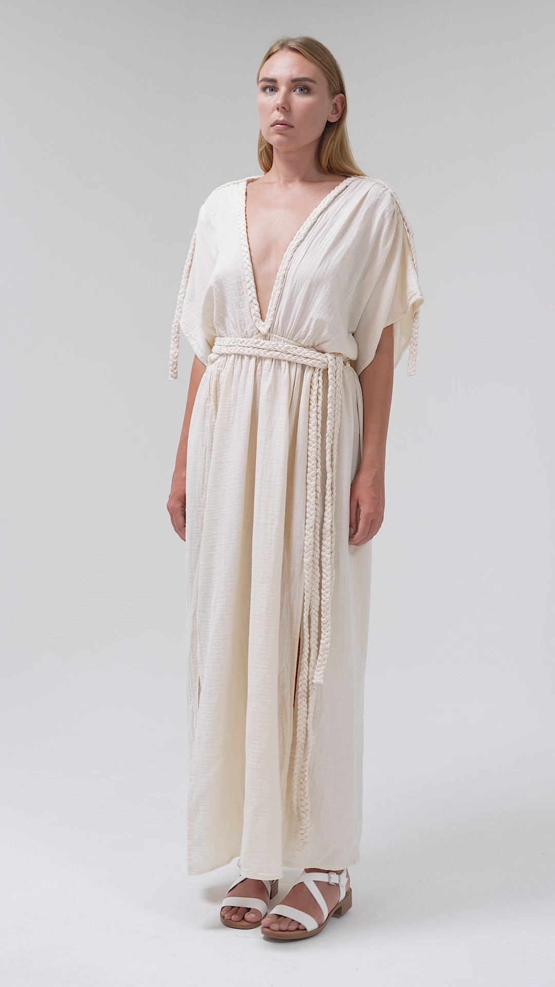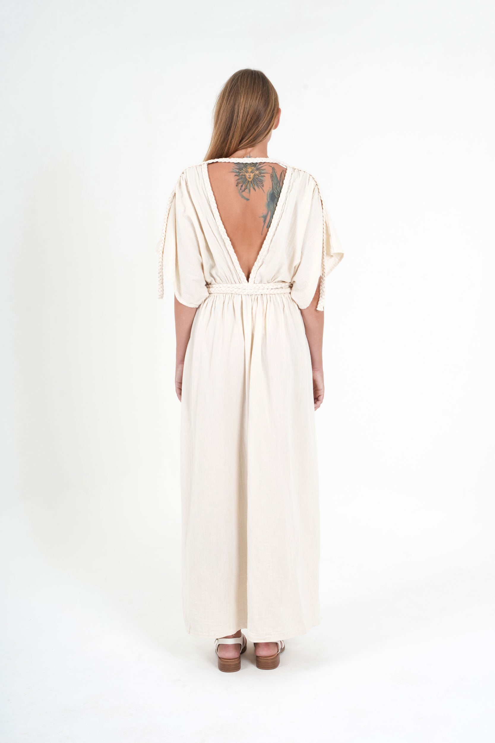 The braided elements of these dresses are individually handwoven, showcasing true artisanal craftsmanship.