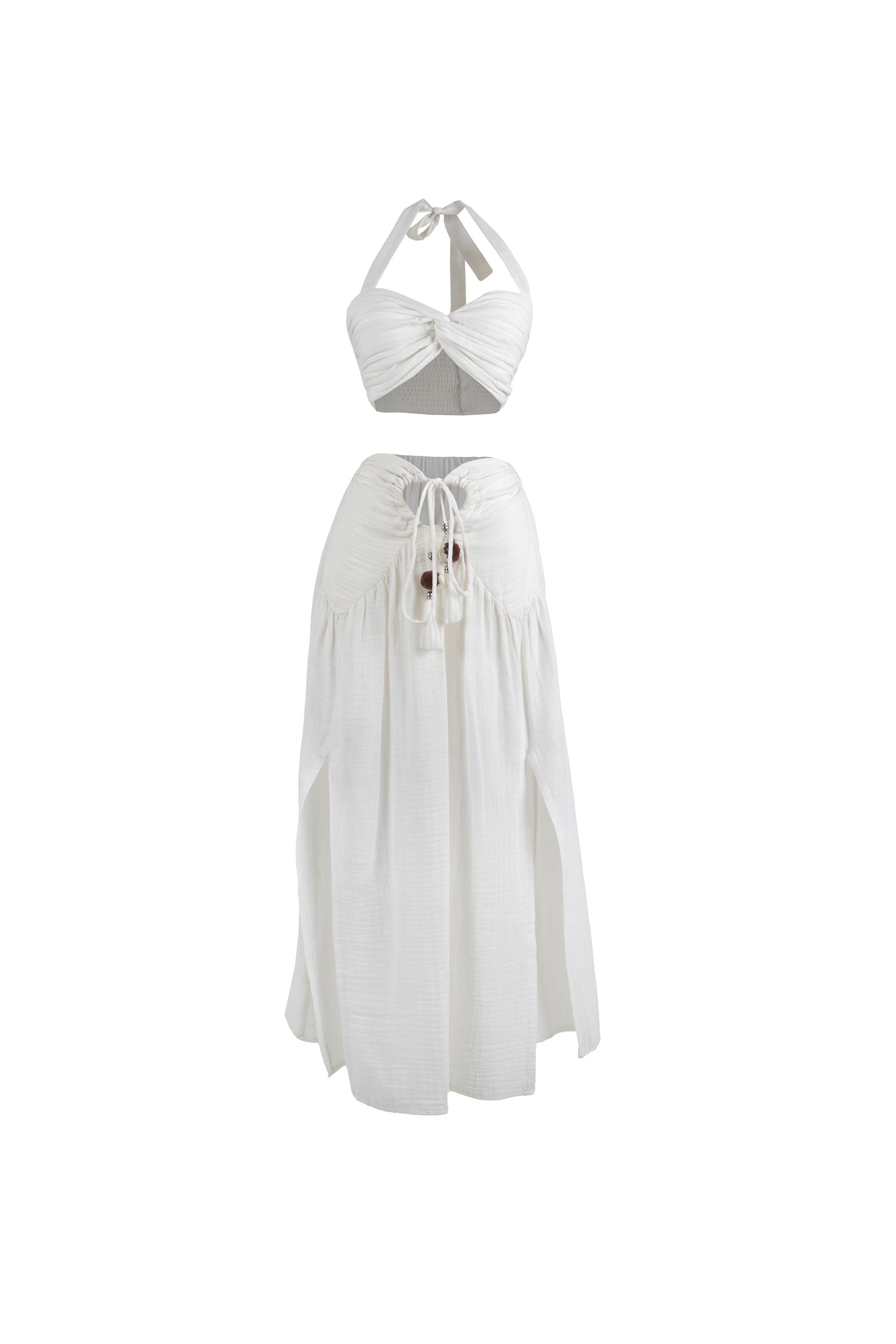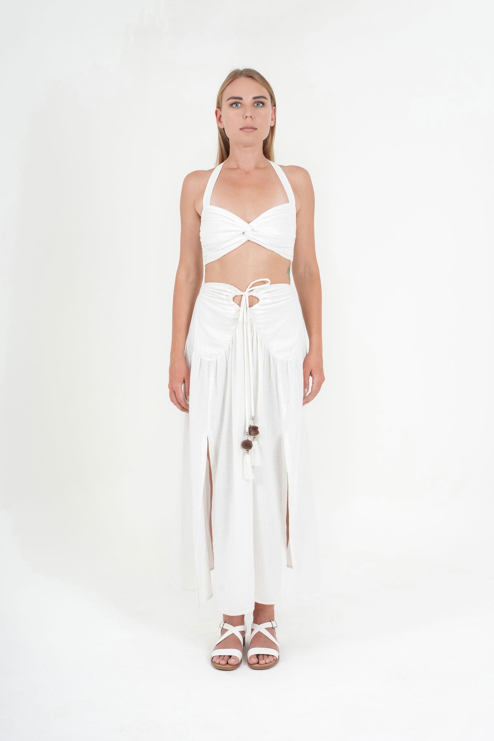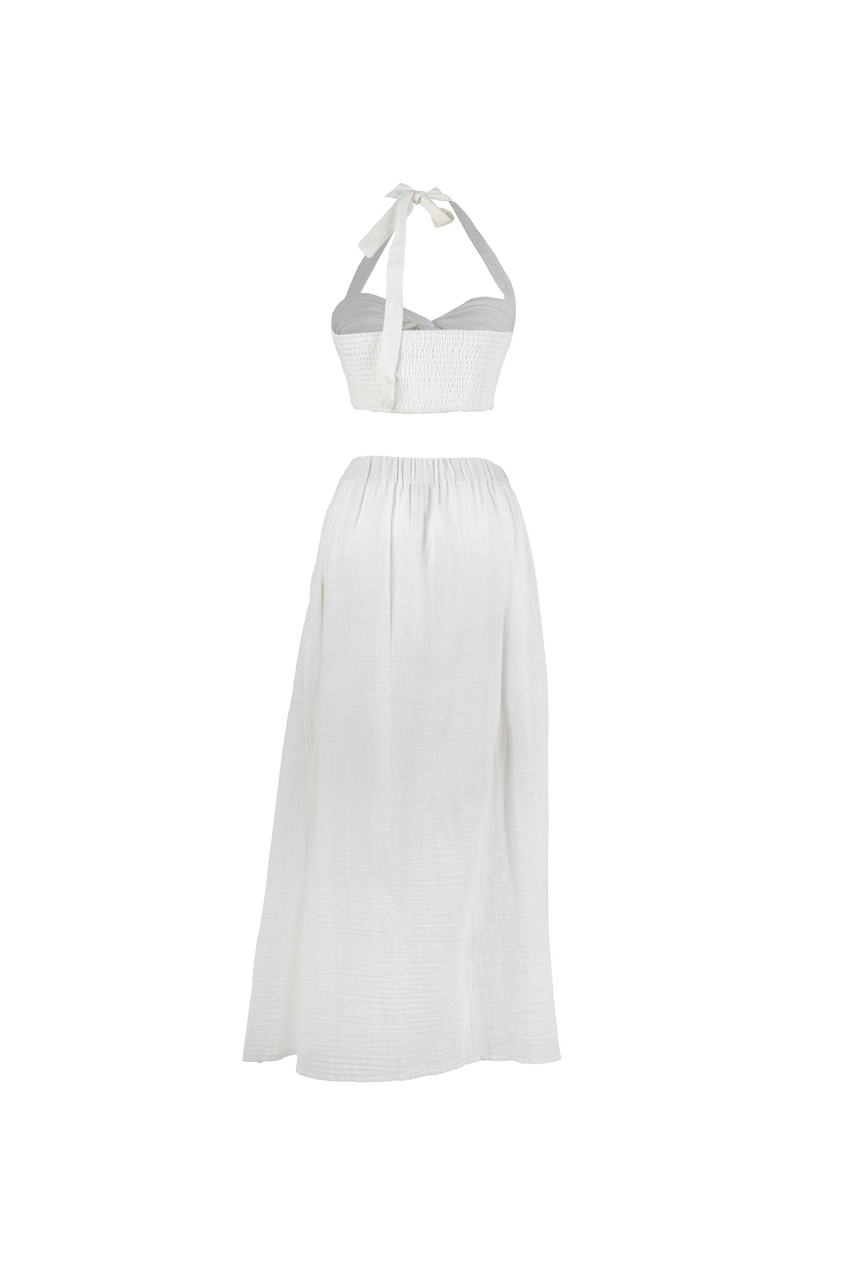 WHITE Two-Piece Festival Set – Bustier Top & Slit Maxi Skirt