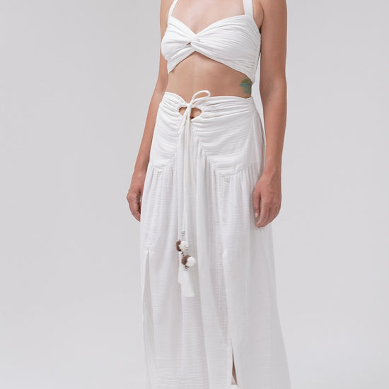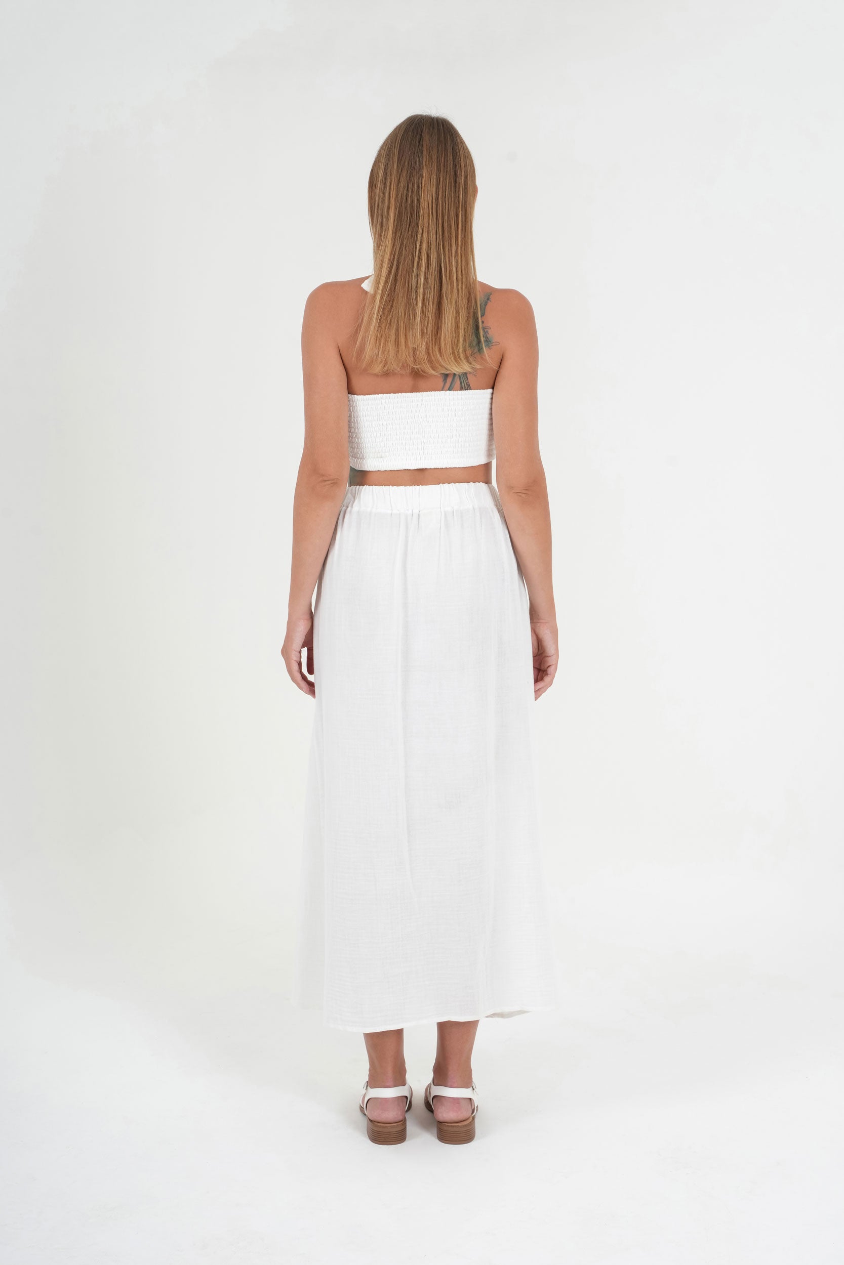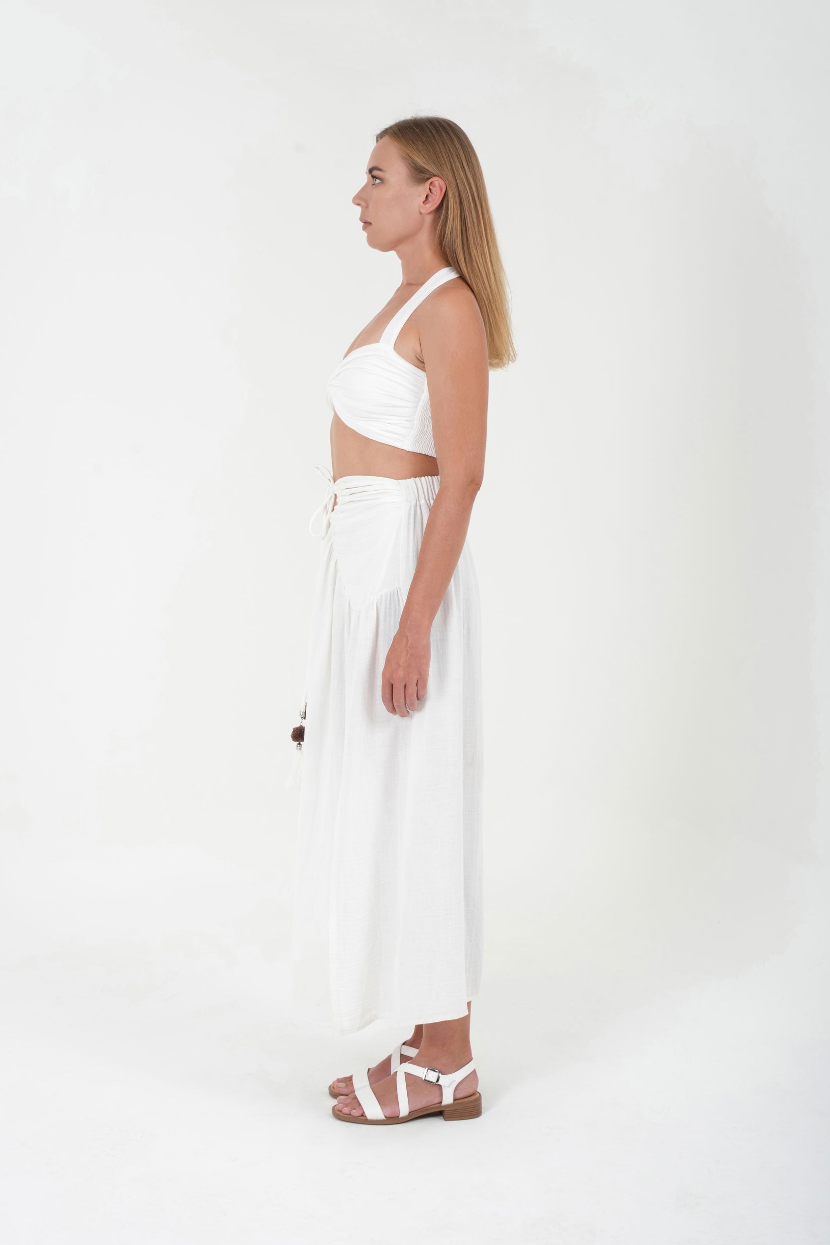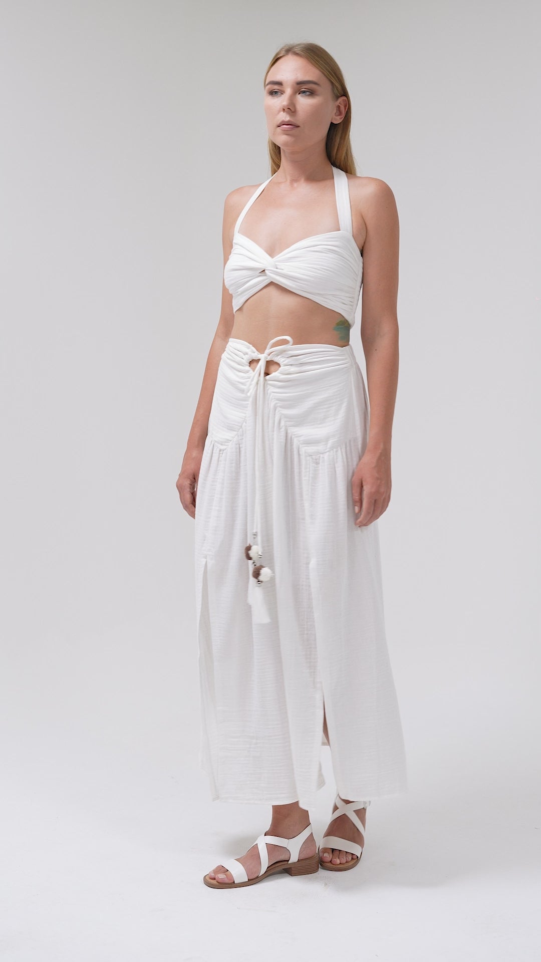 WHITE Two-Piece Festival Set – Bustier Top & Slit Maxi Skirt